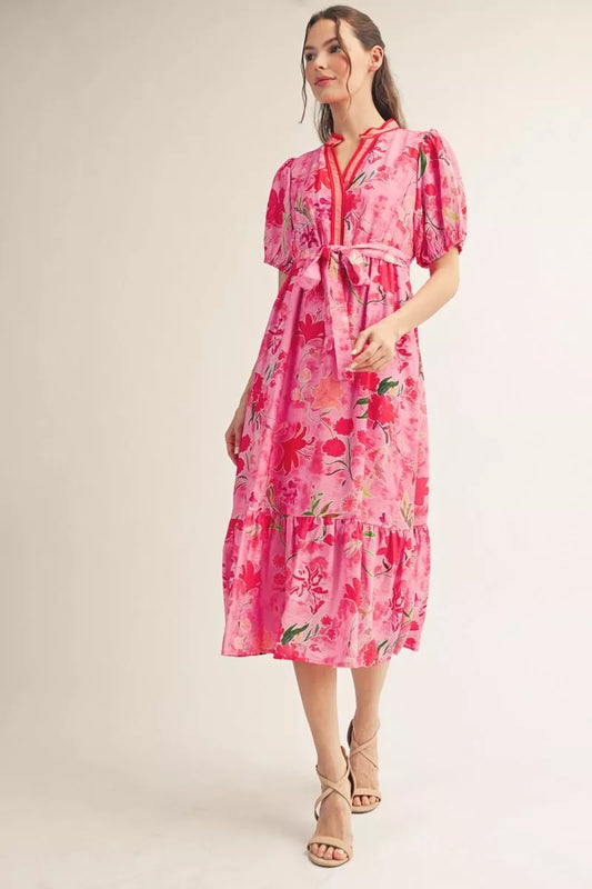 Floral Puff Sleeve Midi Dress
