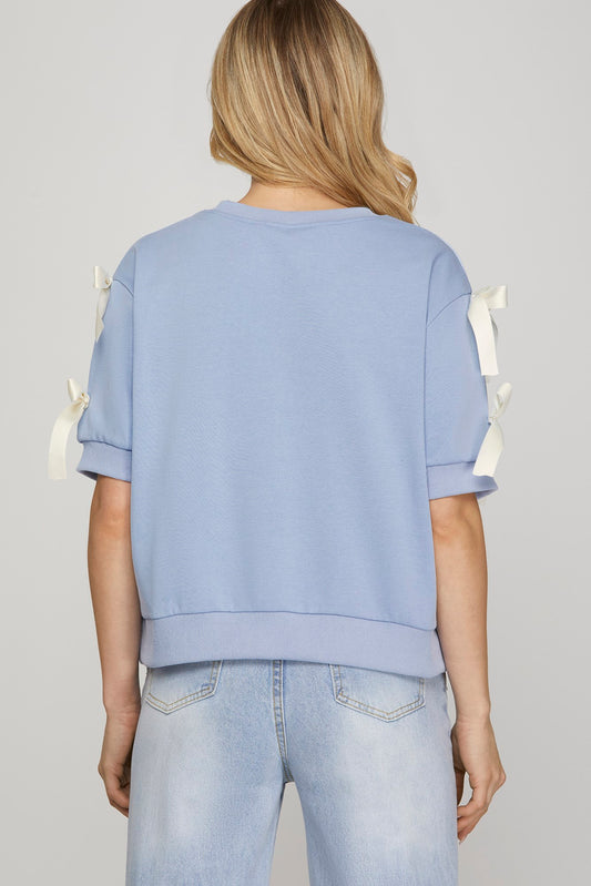 Blue Top with Contrast Bow Detail