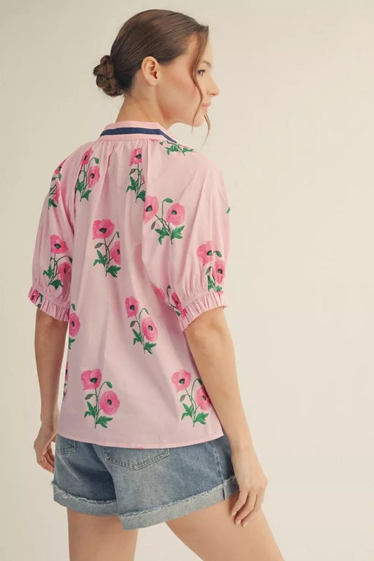 Floral Drop Shoulder Loose Fit Top with Scallop Trim