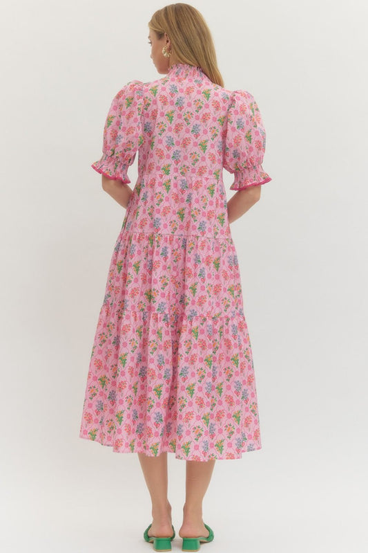 Blush Garden Puff Sleeve Midi Dress